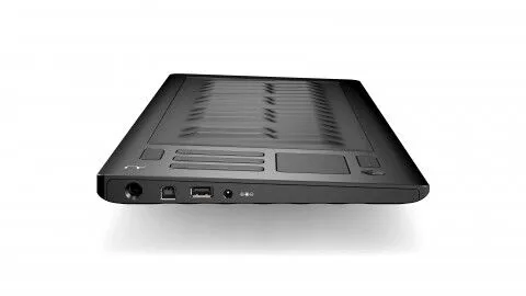 Toward the left on the back of the Roli Seaboard Grand are three ¼” footpedal jacks and ¼” left and right audio outputs. On the right are USB connections. (Juan Trujillo, courtesy of Roli)