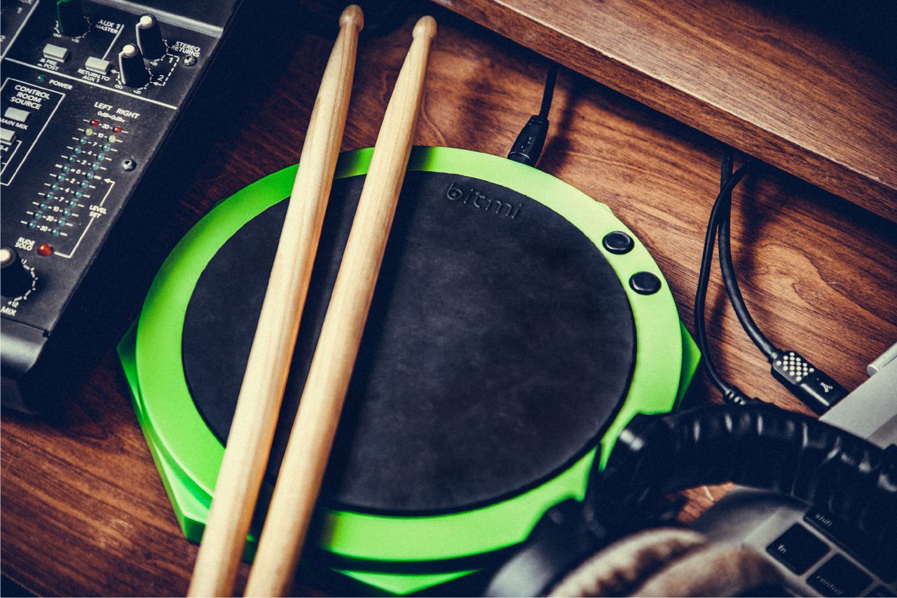 It’s called Bitmi, a USB MIDI velocity sensitive drum pad. Bitmi was designed to be simple and effective as a tool to record percussive MIDI tracks.