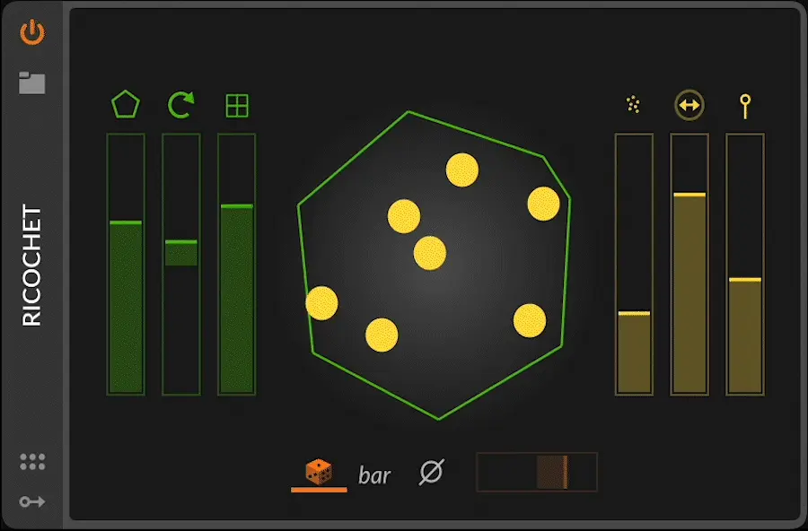 Ricochet treats notes as bouncing balls in a room, which retrigger on collision and can use their position to animate panning and timbre.