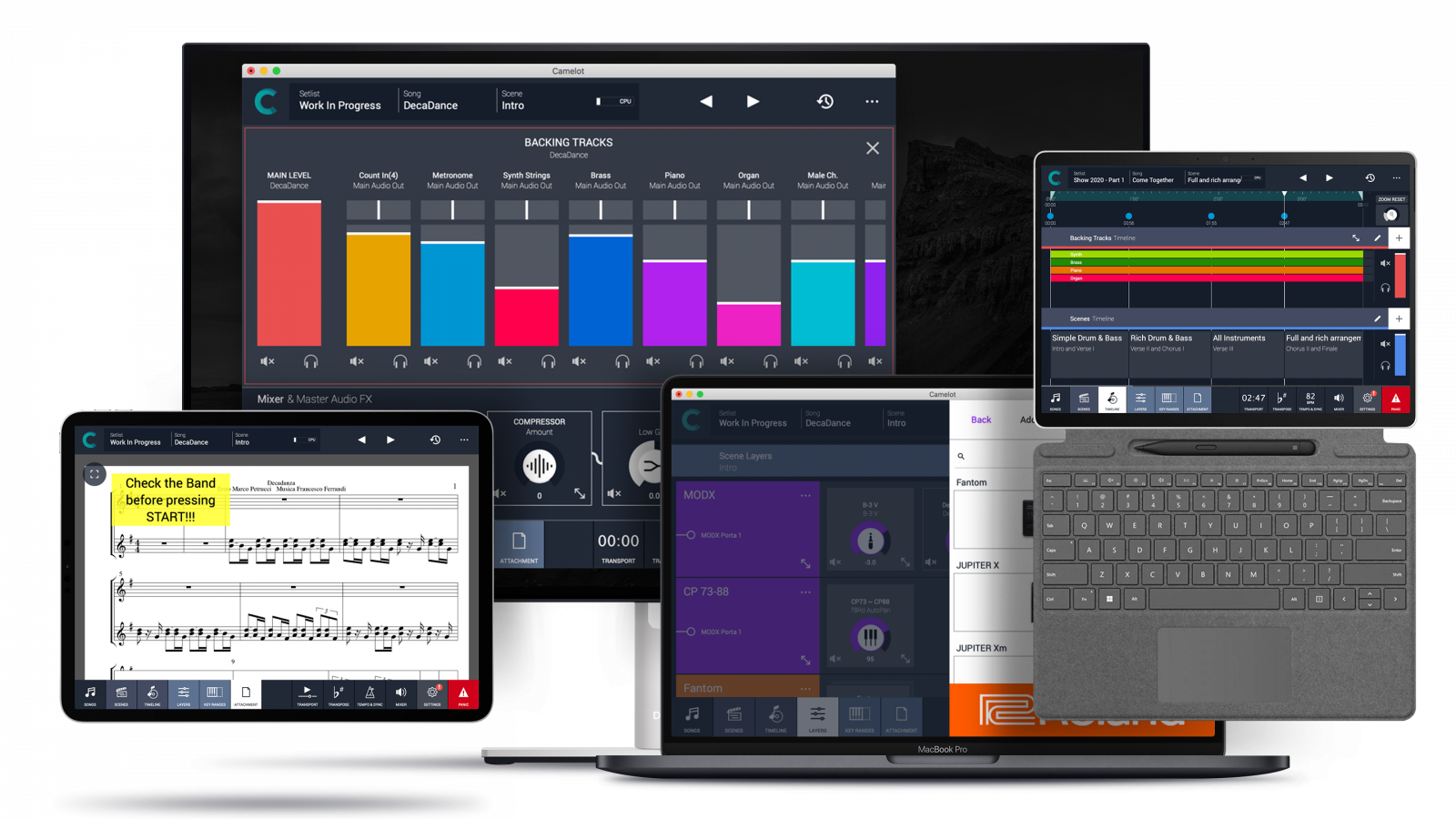 Camelot is a Setlist Manager, a Software Instrument & FX Host, a PDF Music Score reader, a Multitrack Audio Player, and the most advanced Audio/MIDI Patchbay and Router.