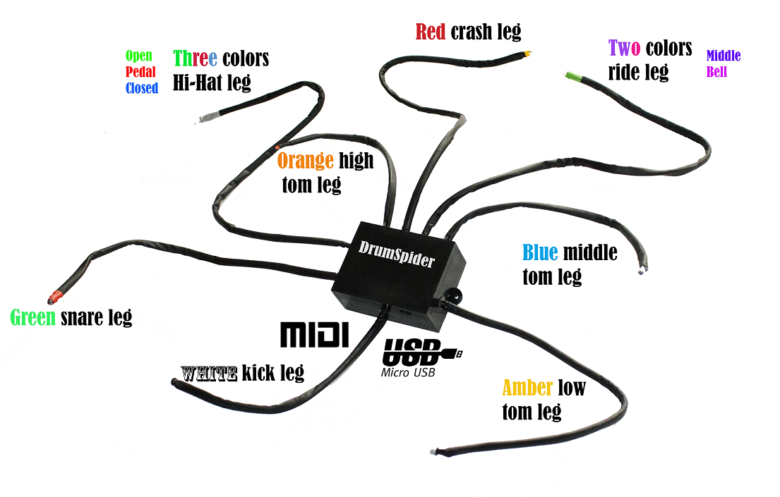Drum Spider is the MIDI – light interface.