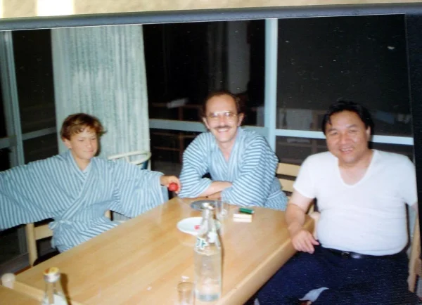 Ralph Dyck and his son, Jeff in Japan with Ikutaro Kakehachi, President of Roland